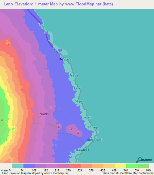 Note:Please note that Lano,Samoa Elevation Map is in beta.