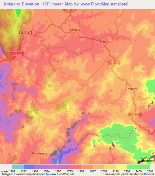 Note:Please note that Ndagano,Burundi Elevation Map is in beta.