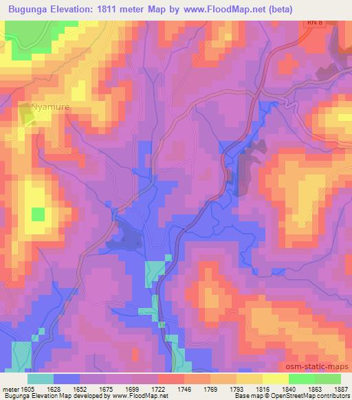 Note:Please note that Bugunga,Burundi Elevation Map is in beta.