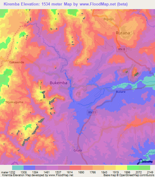 Note:Please note that Kiremba,Burundi Elevation Map is in beta.
