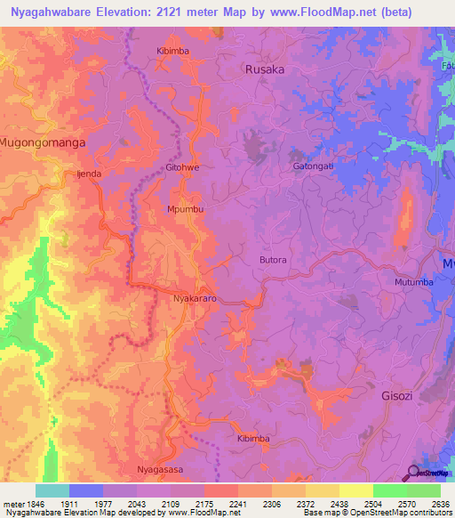 Note:Please note that Nyagahwabare,Burundi Elevation Map is in beta.