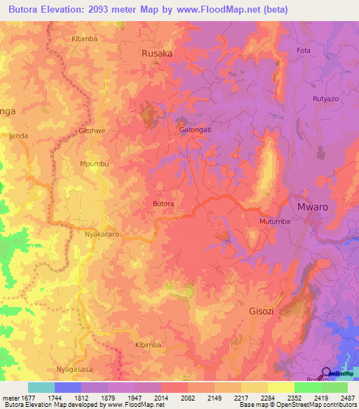 Note:Please note that Butora,Burundi Elevation Map is in beta.