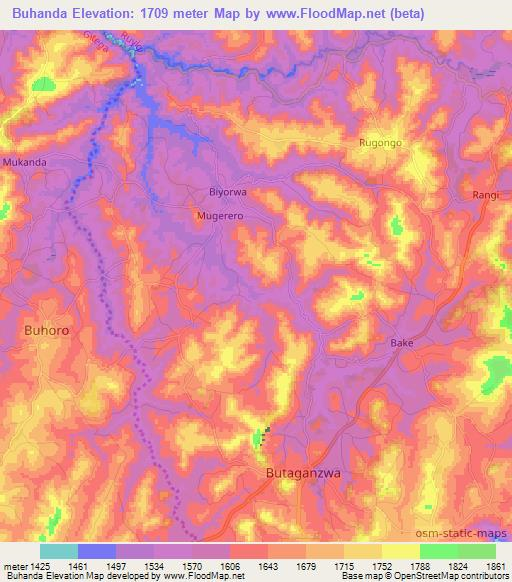 Note:Please note that Buhanda,Burundi Elevation Map is in beta.