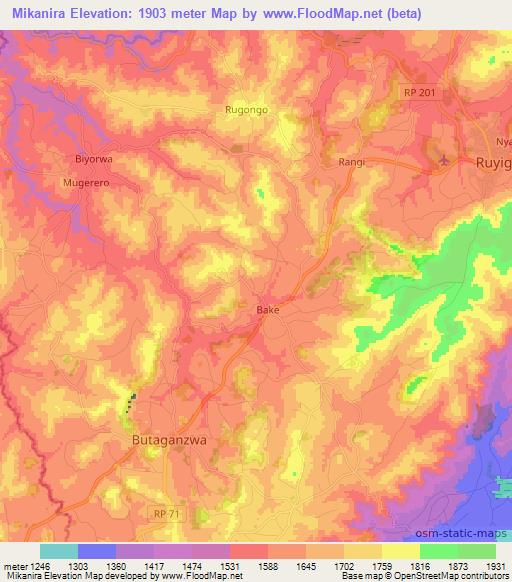 Note:Please note that Mikanira,Burundi Elevation Map is in beta.