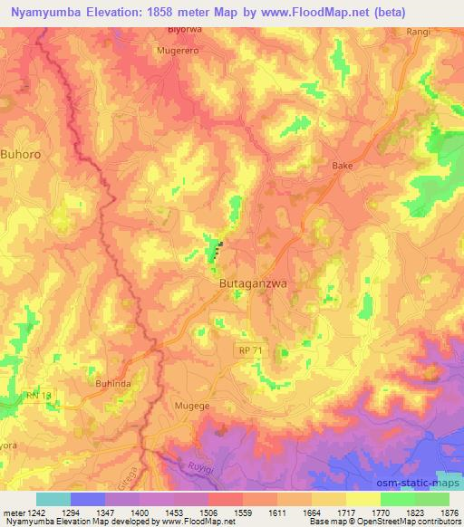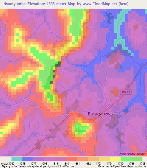Note:Please note that Nyamyumba,Burundi Elevation Map is in beta.