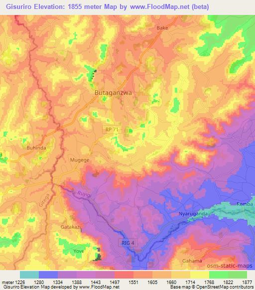 Note:Please note that Gisuriro,Burundi Elevation Map is in beta.