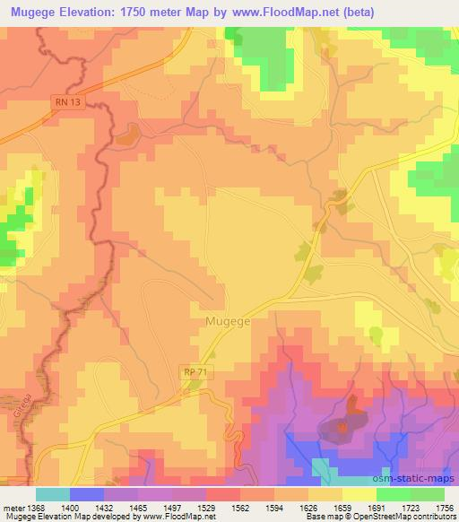 Note:Please note that Mugege,Burundi Elevation Map is in beta.