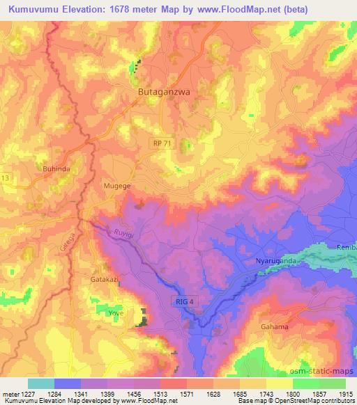 Note:Please note that Kumuvumu,Burundi Elevation Map is in beta.