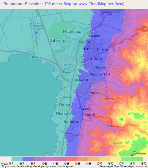 Note:Please note that Bujumbura,Burundi Elevation Map is in beta.