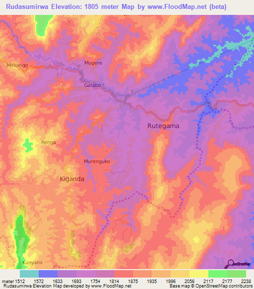 Note:Please note that Rudasumirwa,Burundi Elevation Map is in beta.