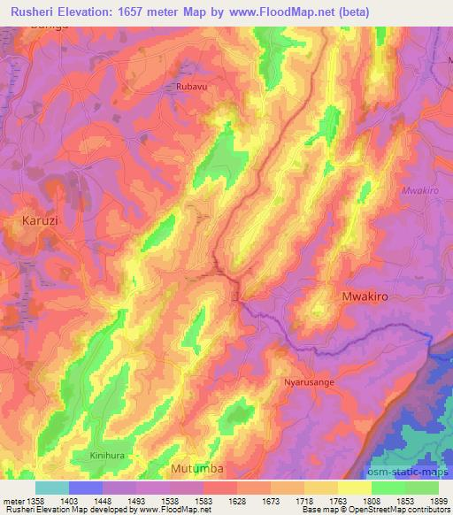 Note:Please note that Rusheri,Burundi Elevation Map is in beta.