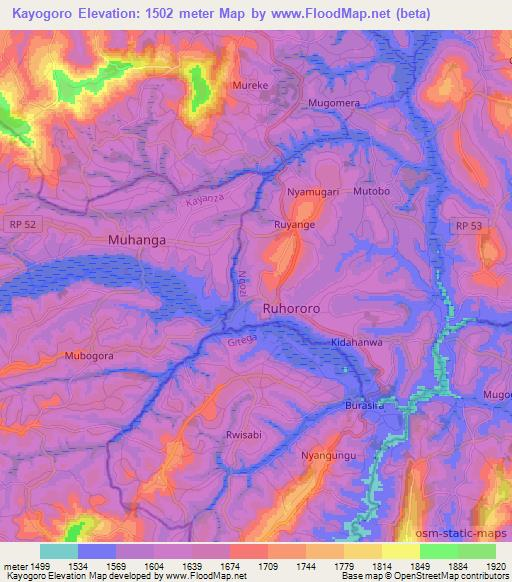 Note:Please note that Kayogoro,Burundi Elevation Map is in beta.