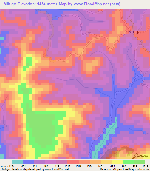 Note:Please note that Mihigo,Burundi Elevation Map is in beta.