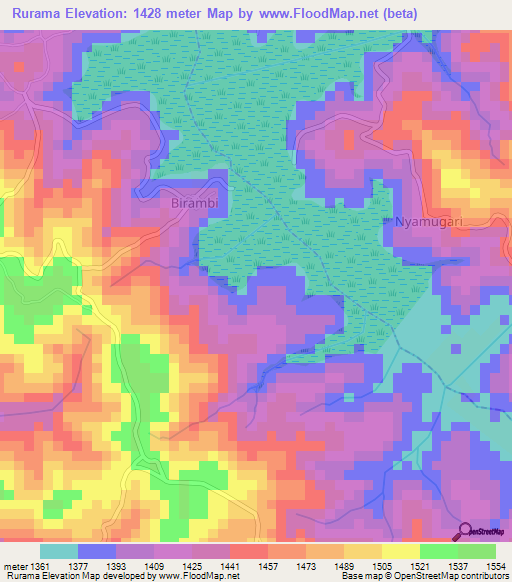 Note:Please note that Rurama,Burundi Elevation Map is in beta.