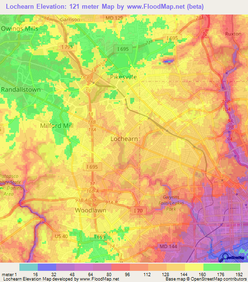 Note:Please note that Lochearn,US Elevation Map is in beta.