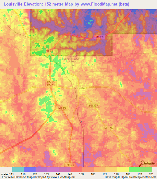 Note:Please note that Louisville,US Elevation Map is in beta.