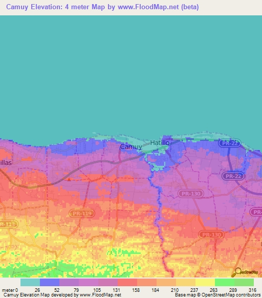 Note:Please note that Camuy,Puerto Rico Elevation Map is in beta.