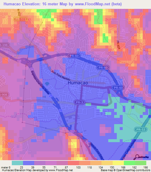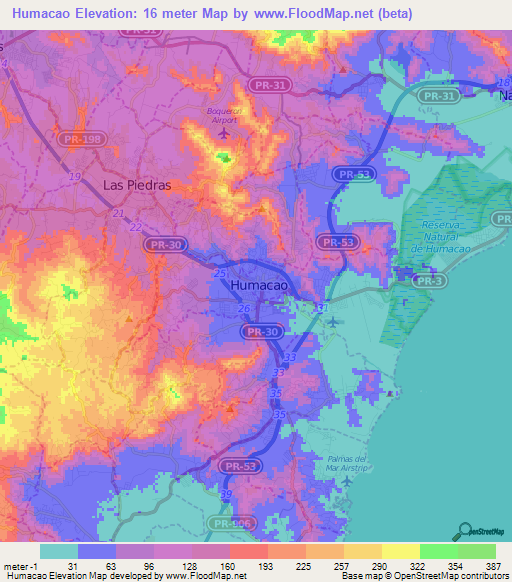 Note:Please note that Humacao,Puerto Rico Elevation Map is in beta.