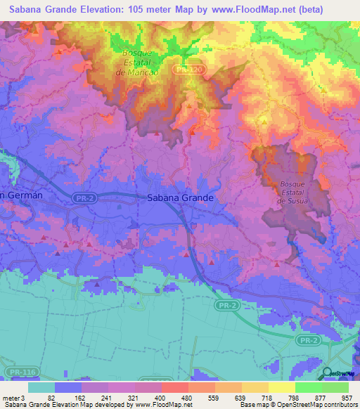 Note:Please note that Sabana Grande,Puerto Rico Elevation Map is in beta.