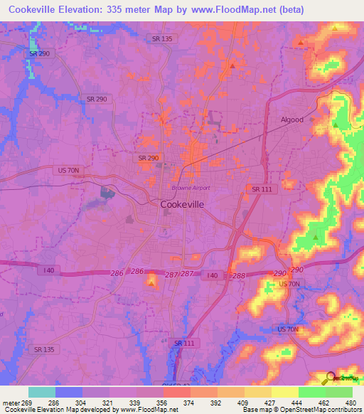Note:Please note that Cookeville,US Elevation Map is in beta.