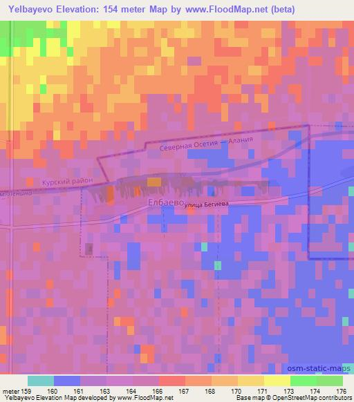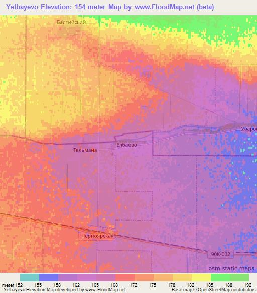 Below is the Elevation map of Yelbayevo,Russia, which displays range of elevation with different colours.
