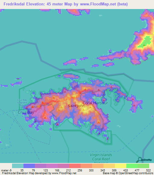 Note:Please note that Fredriksdal,U.S. Virgin Islands Elevation Map is in beta.
