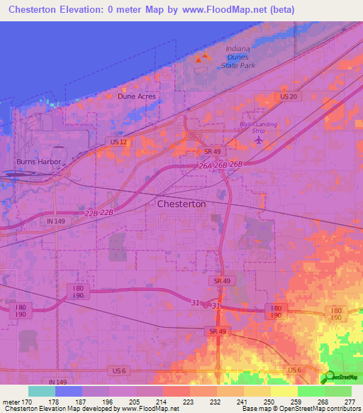 Note:Please note that Chesterton,US Elevation Map is in beta.