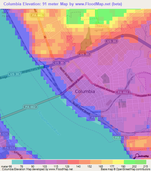 Note:Please note that Columbia,US Elevation Map is in beta.