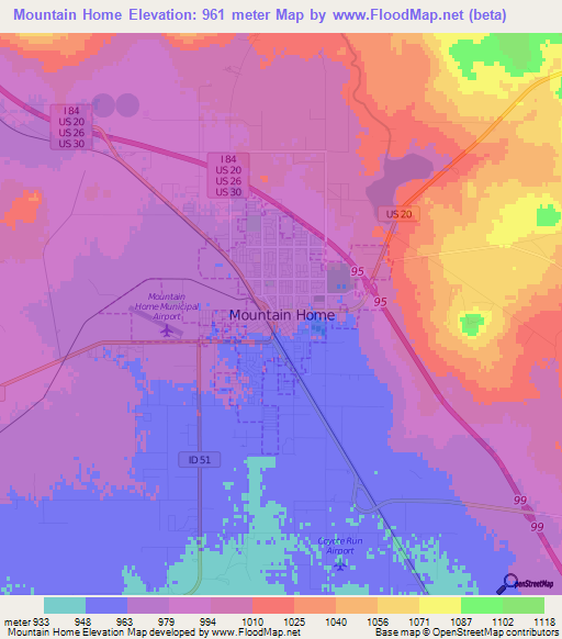 Note:Please note that Mountain Home,US Elevation Map is in beta.
