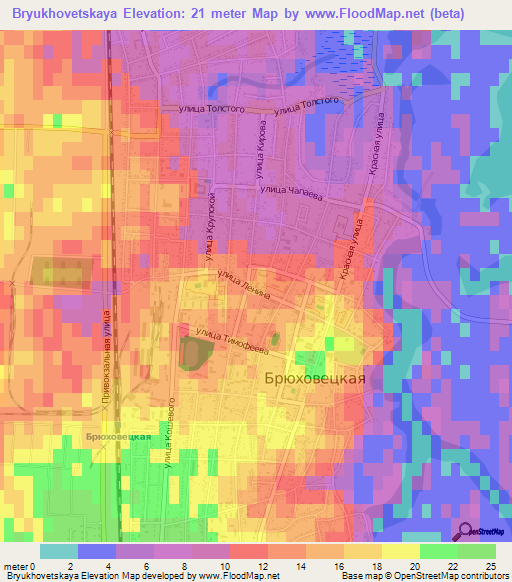 Note:Please note that Bryukhovetskaya,Russia Elevation Map is in beta.