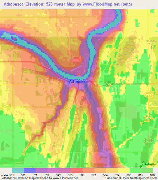 Note:Please note that Athabasca,Canada Elevation Map is in beta.
