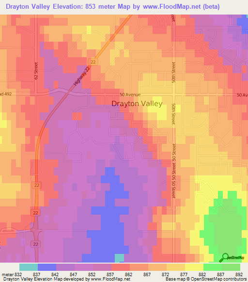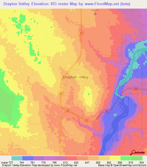 Note:Please note that Drayton Valley,Canada Elevation Map is in beta.
