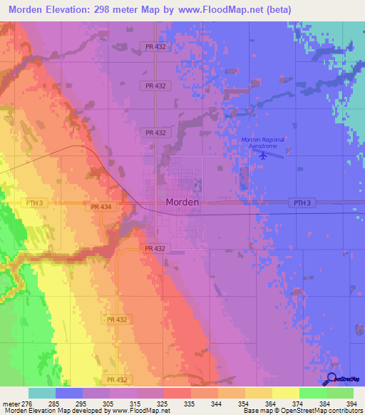Note:Please note that Morden,Canada Elevation Map is in beta.