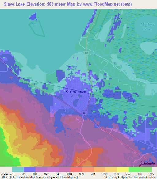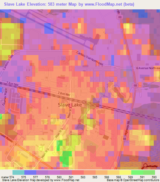 Note:Please note that Slave Lake,Canada Elevation Map is in beta.