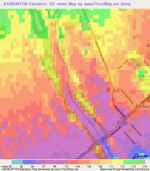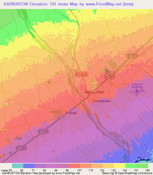 Note:Please note that ASHBURTON,New Zealand Elevation Map is in beta.