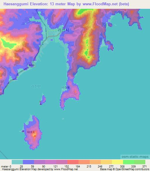 Note:Please note that Haesanggumi,North Korea Elevation Map is in beta.