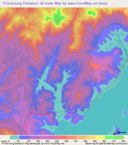 Note:Please note that P'imok-tong,North Korea Elevation Map is in beta.