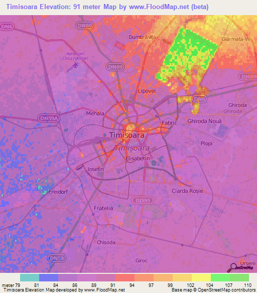This Timisoara,Romania Elevation Map is licensed under CC BY-SA.