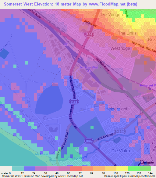 Note:Please note that Somerset West,South Africa Elevation Map is in beta.
