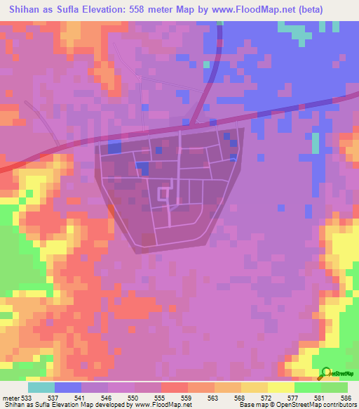 Note:Please note that Shihan as Sufla,Yemen Elevation Map is in beta.