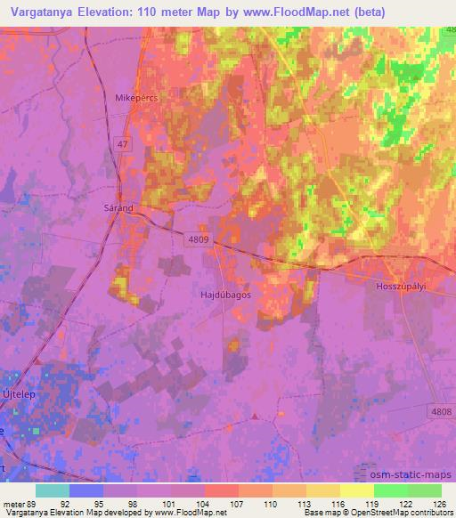 Below is the Elevation map of Vargatanya,Hungary, which displays range of elevation with different colours.
