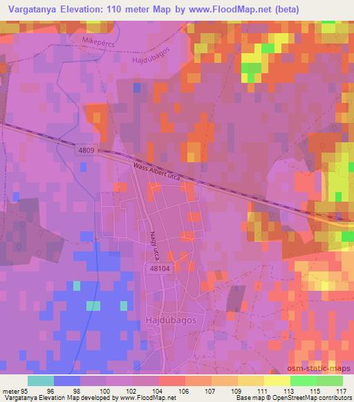 The maps also provides idea of topography and contour of Vargatanya,Hungary.