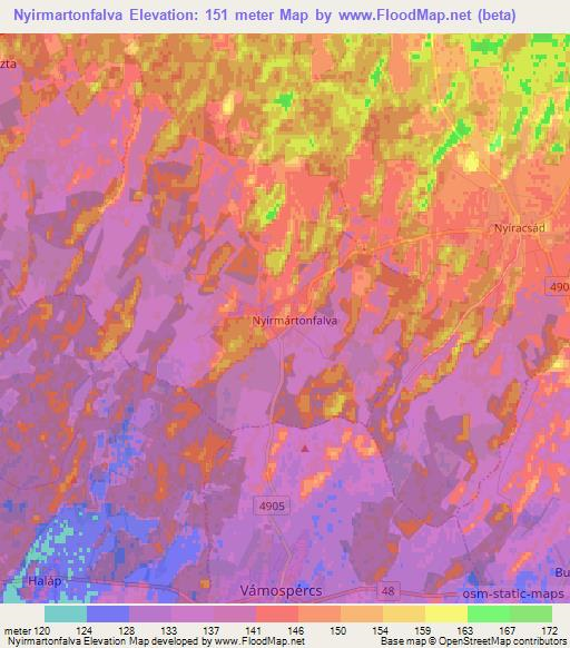 Below is the Elevation map of Nyirmartonfalva,Hungary, which displays range of elevation with different colours.