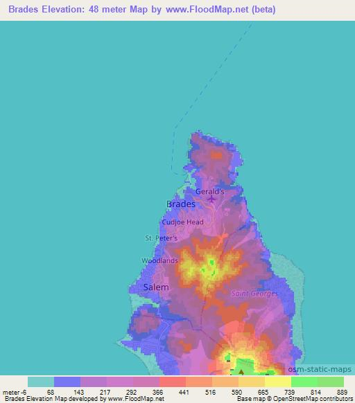 Note:Please note that Brades,Montserrat Elevation Map is in beta.