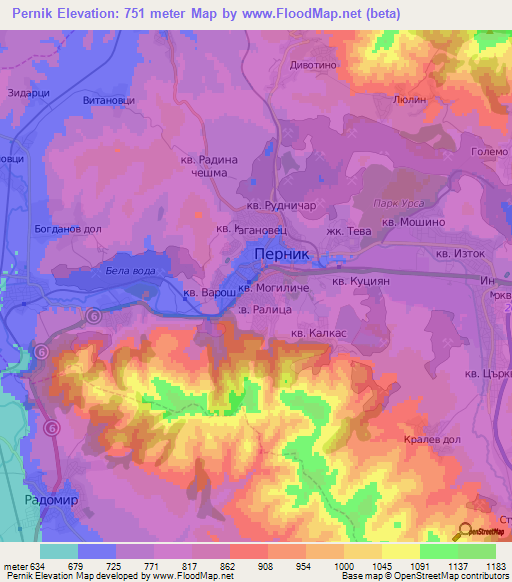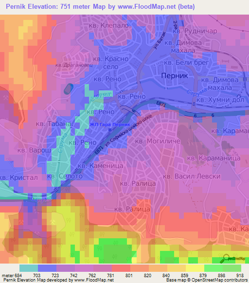 Note:Please note that Pernik,Bulgaria Elevation Map is in beta.