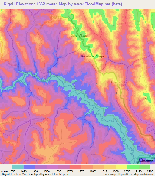 Note:Please note that Kigali,Rwanda Elevation Map is in beta.