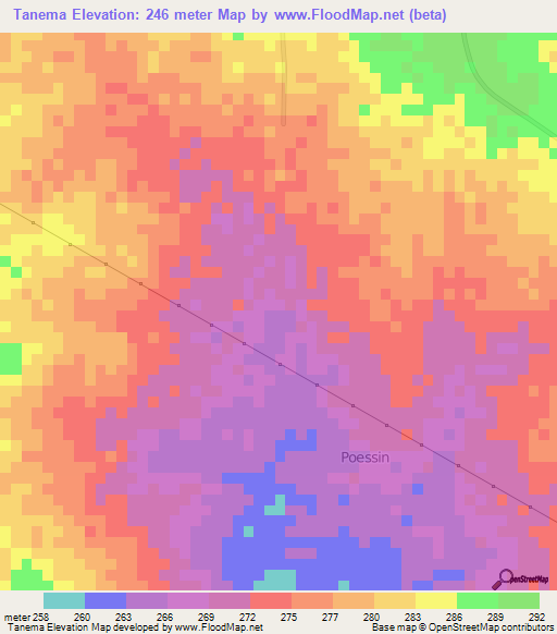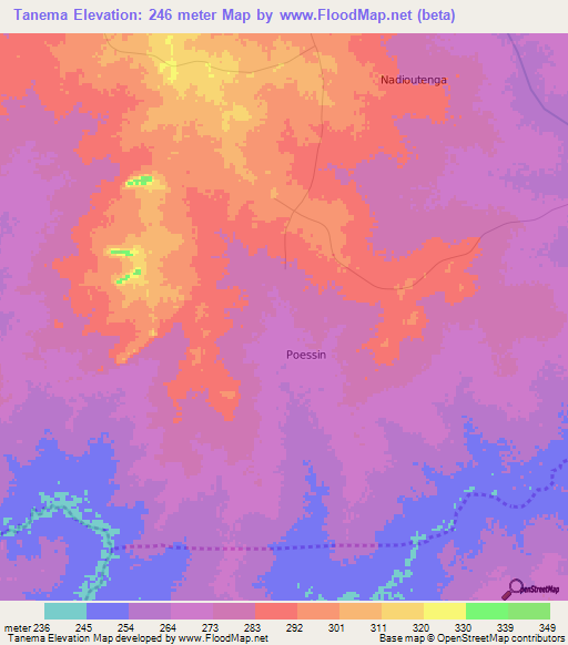 Note:Please note that Tanema,Burkina Faso Elevation Map is in beta.