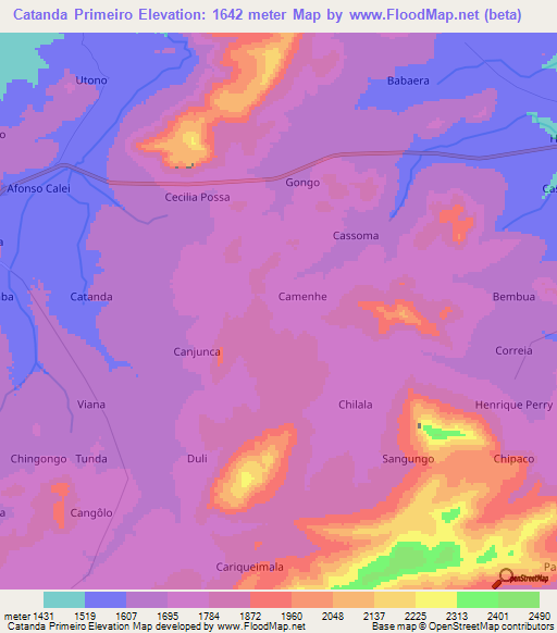 Note:Please note that Catanda Primeiro,Angola Elevation Map is in beta.