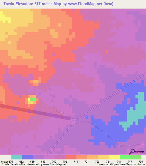 Below is the Elevation map of Towla,Zimbabwe, which displays range of elevation with different colours.