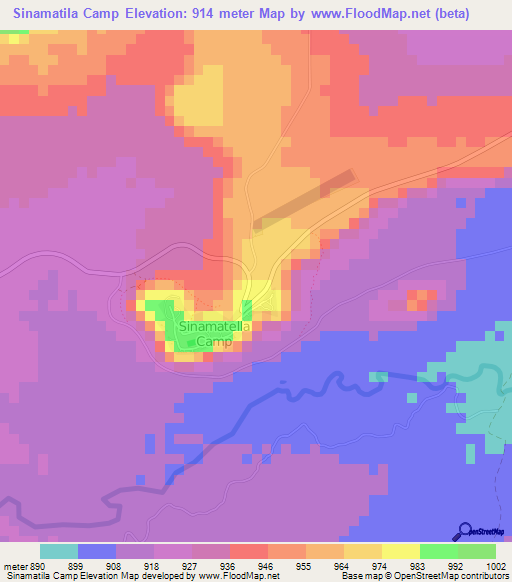 This Sinamatila Camp,Zimbabwe Elevation Map is licensed under CC BY-SA.
